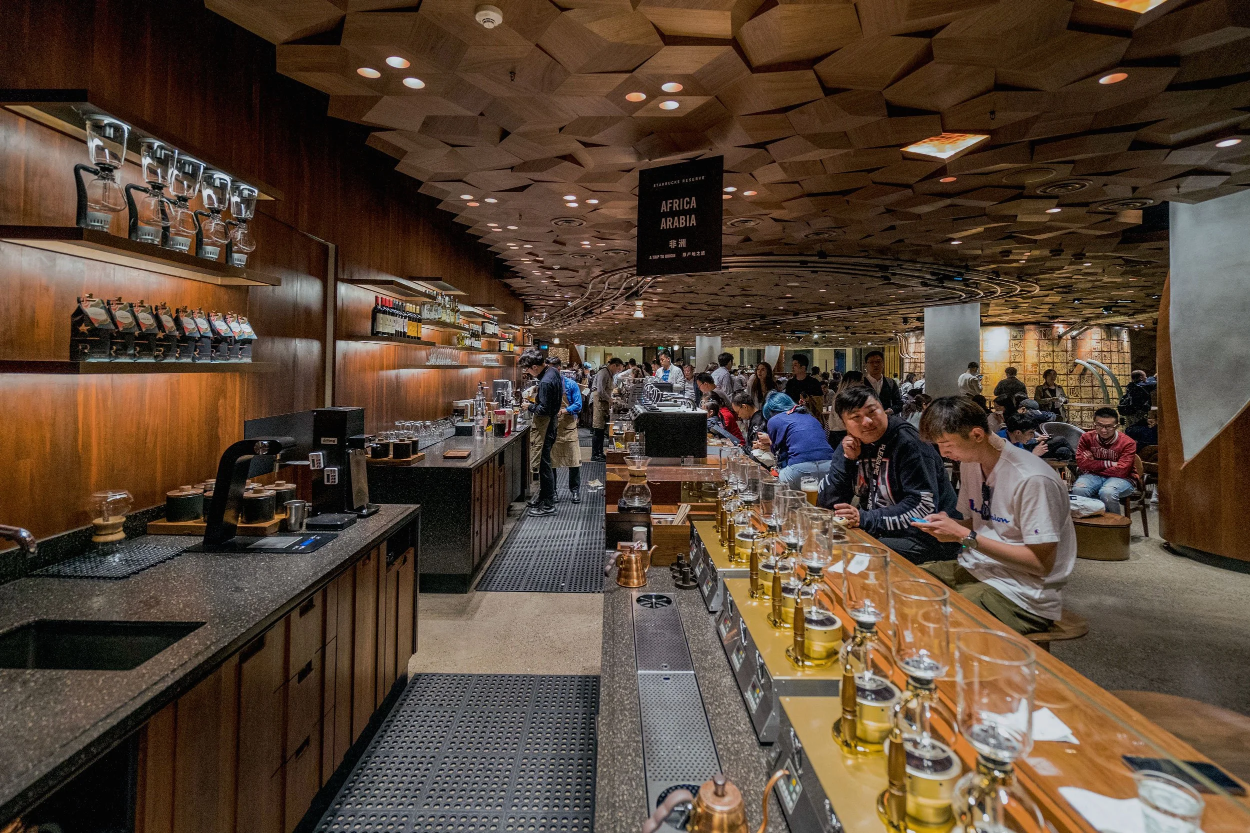 - Starbucks Reserve Roastery – cửa hàng Starbucks lớn nhất thế giới, được ví như “thiên đường cà phê” giữa lòng Thượng Hải. Không gian sang trọng, hiện đại với khu rang xay, pha chế, bánh ngọt và quầy bar trải nghiệm độc đáo. Du khách có thể vừa thưởng thức cà phê hảo hạng, vừa chiêm ngưỡng quy trình chế biến ngay tại chỗ.